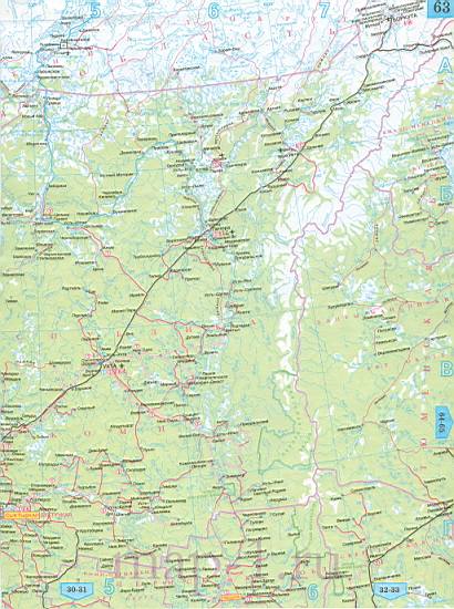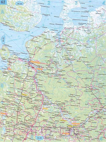 Карта Архангельской области автомобильная. Подробная карта дорог - Архангельская область, масштаб 1см:30км | |||||