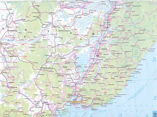 Карта Приморского края автомобильная. Подробная карта дорог - Приморский край, масштаб 1см:30кмКарта Приморского края автомобильная. Подробная карта дорог - Приморский край, масштаб 1см:30км