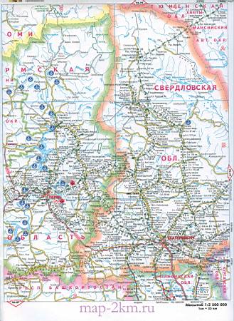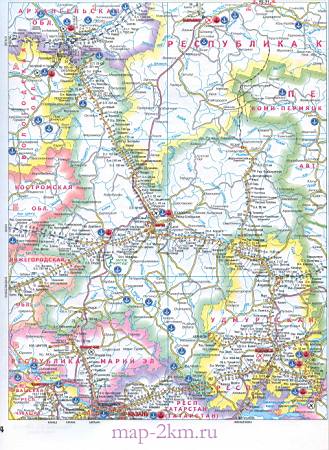 Карта Пермского края автомобильная и жд. Пермский край - подробная карта автомобильных и жд дорог 1см:25км из атласа России | |||||